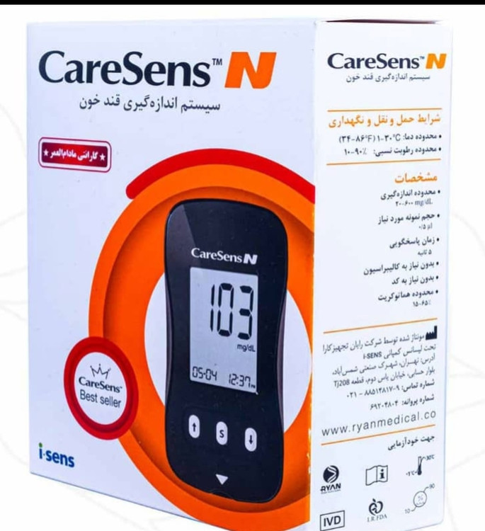 جعبە دستگاە کرسنس حاوی کیف مخصوص، دفترچه راهنما، کارت گارانتی مادام العمر، دستگاه تست قند خون، اتولنست و لنست میباشد.